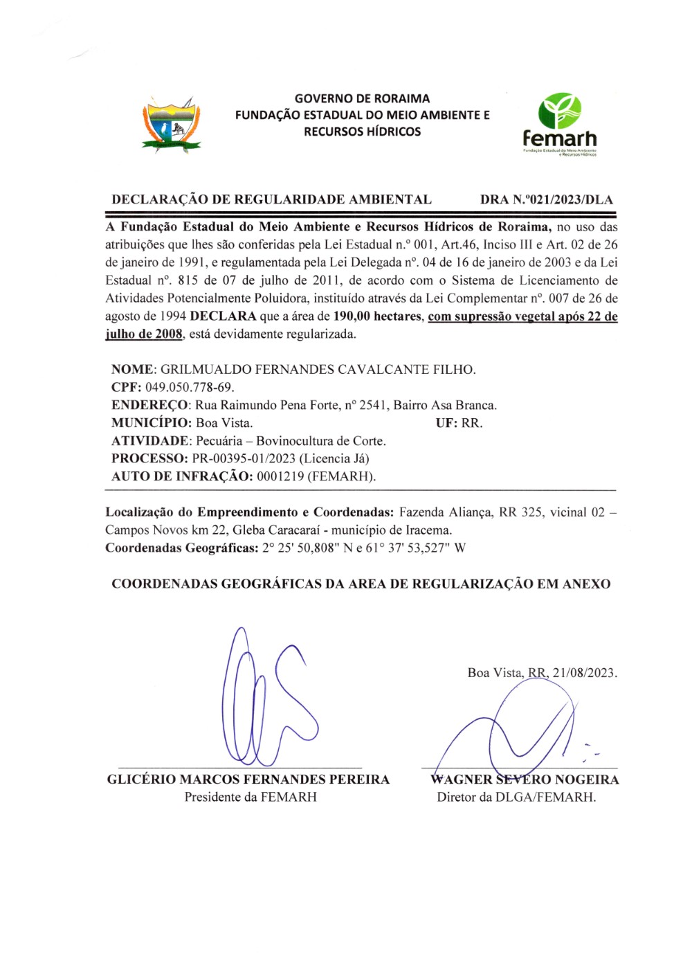 DECLARAÇAO DE REGULARIDADE AMBIENTAL