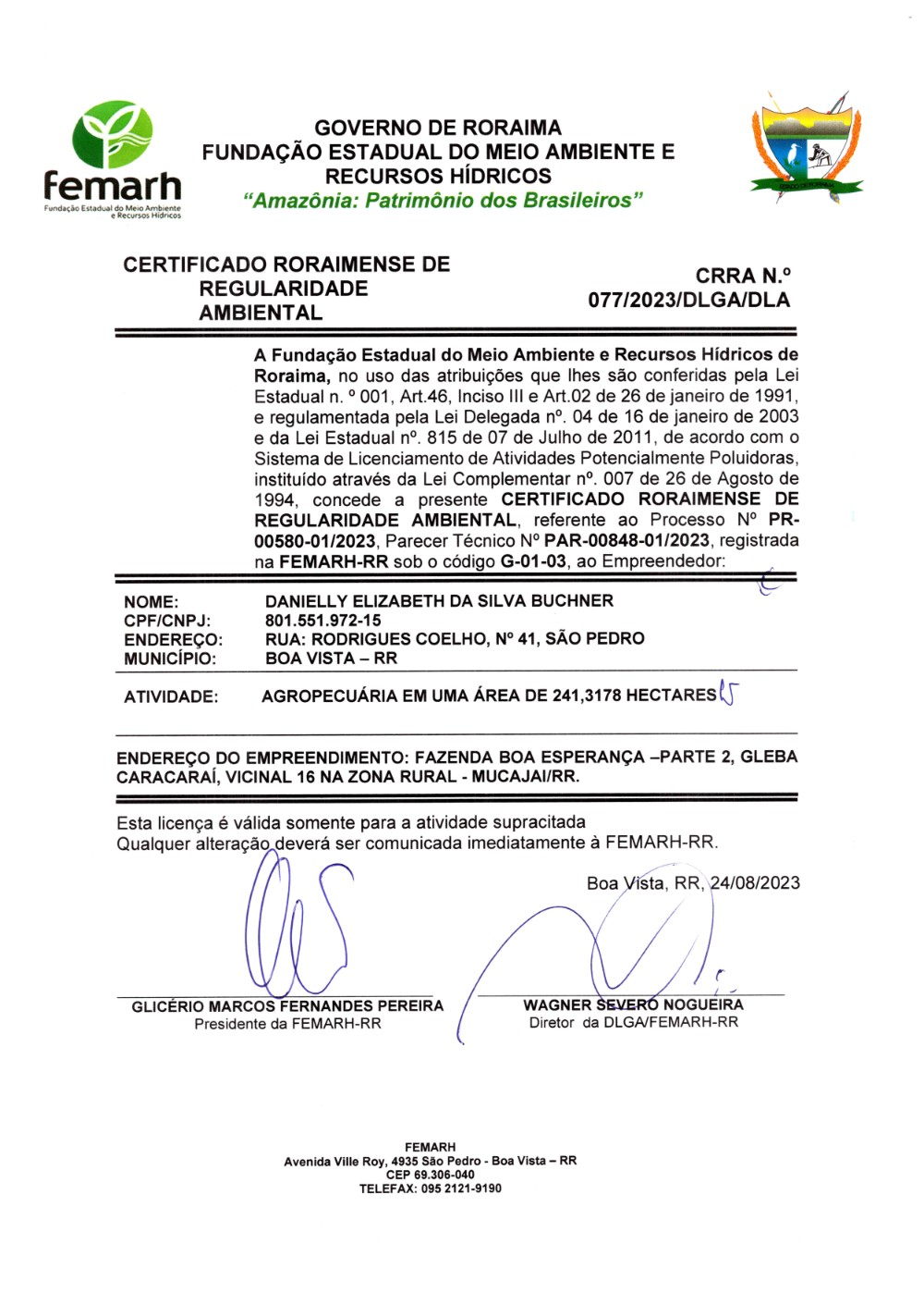 CERTIFICADO DE REGULARIDADE DE MANEJO EM ÁREA DE POSSE