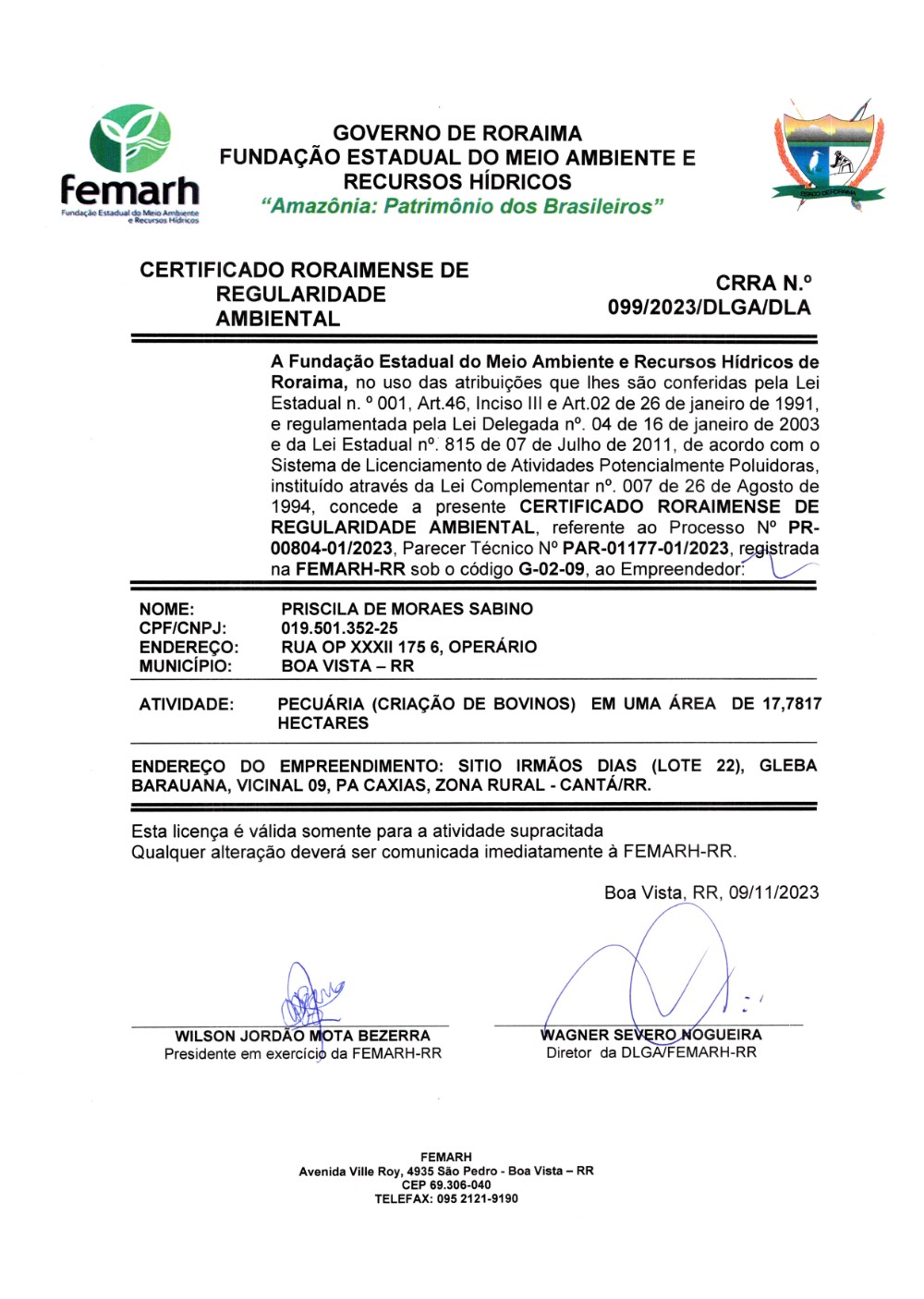 Certificado Roraimense de Regularidade Ambiental