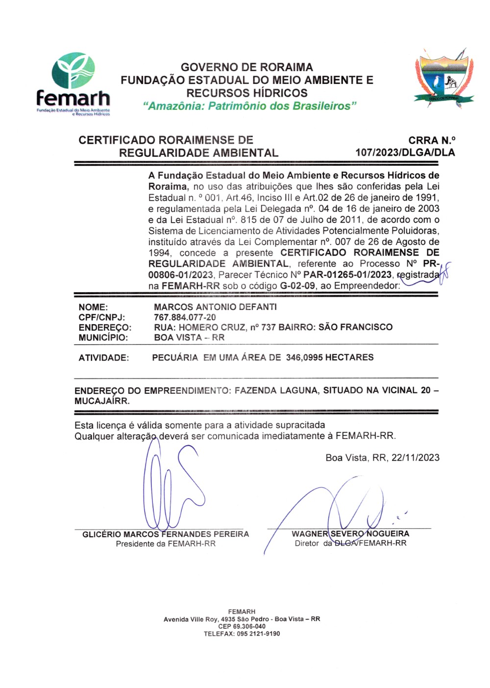CERTIFICADO DE REGULARIDADE DE MANEJO EM ÁREA DE POSSE