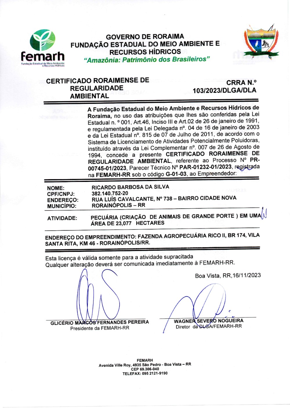 Certificado Roraimense de Regularidade Ambiental