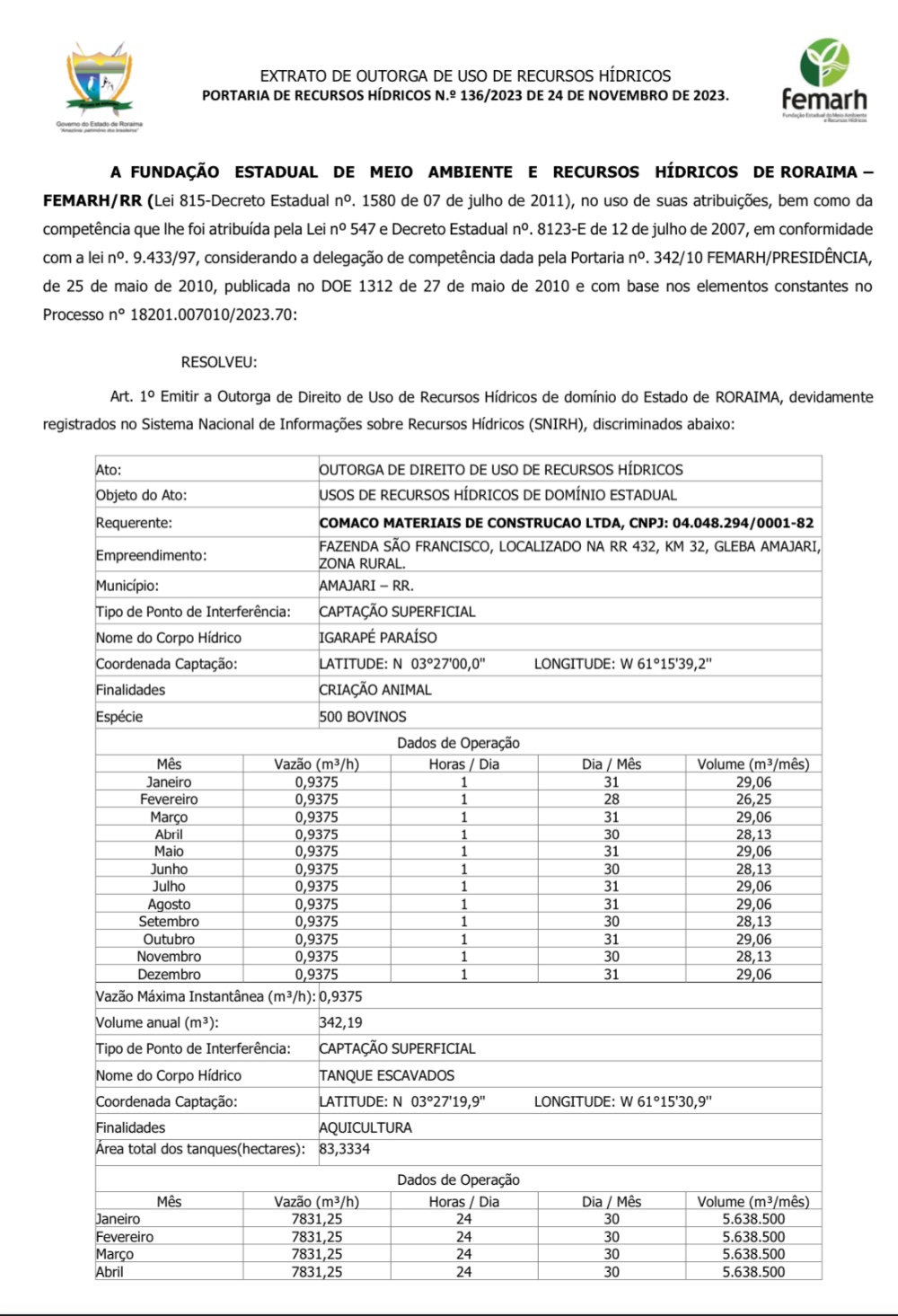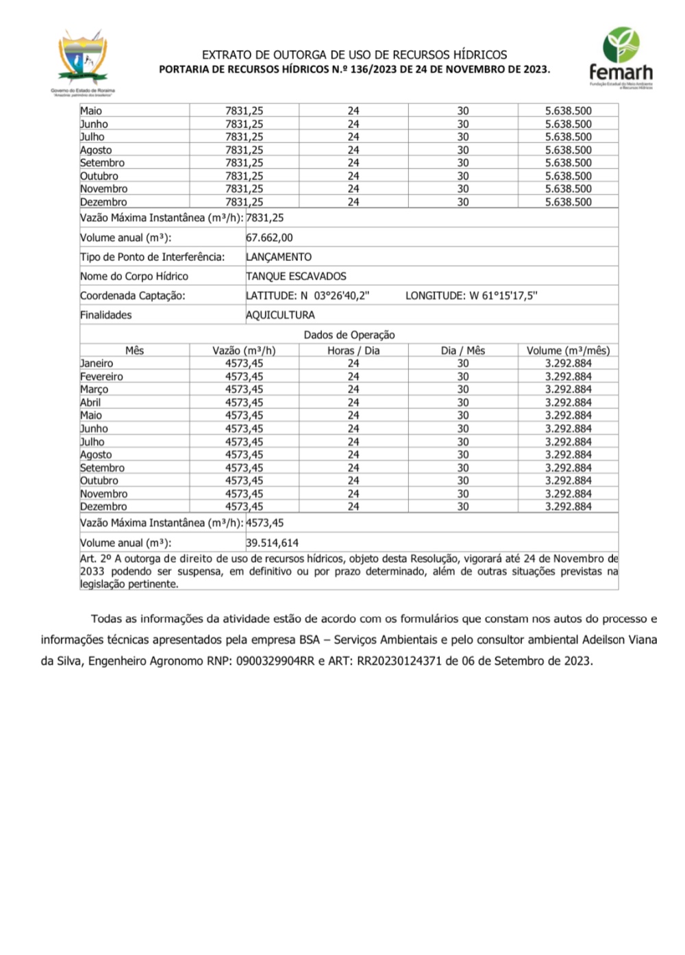 PORTARIA DE RECURSOS HÍDRICOS N.º 136/2023 DE 24 DE NOVEMBRO DE 2023