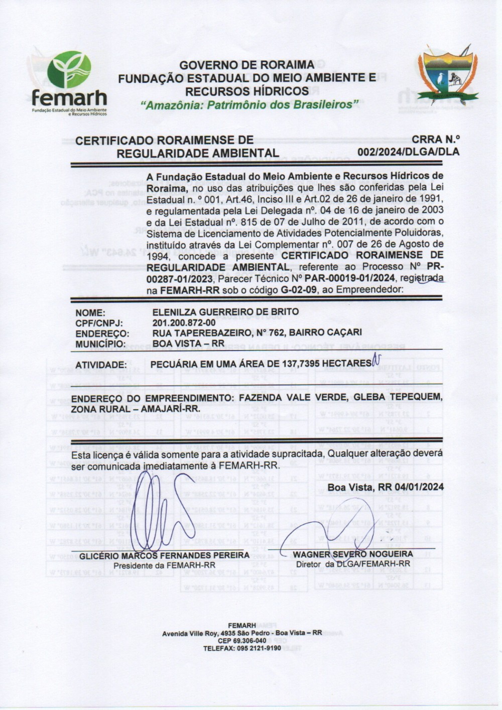 Certificado Roraimense de Regularidade Ambiental