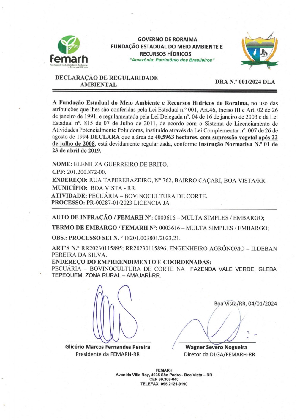 DECLARAÇAO DE REGULARIDADE AMBIENTAL