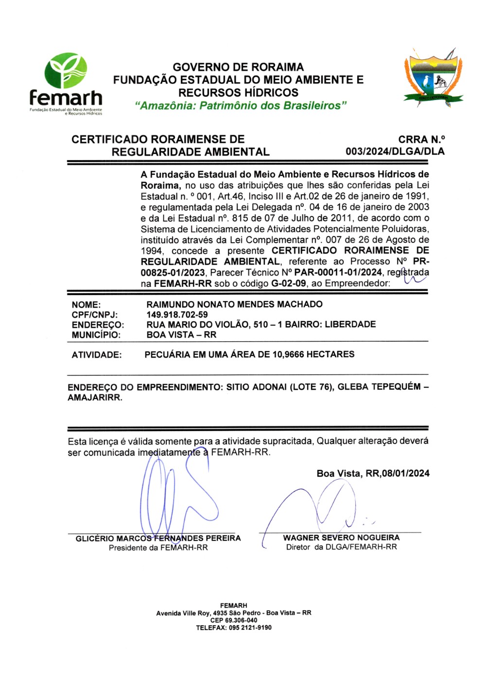 CERTIFICADO DE REGULARIDADE DE MANEJO EM ÁREA DE POSSE