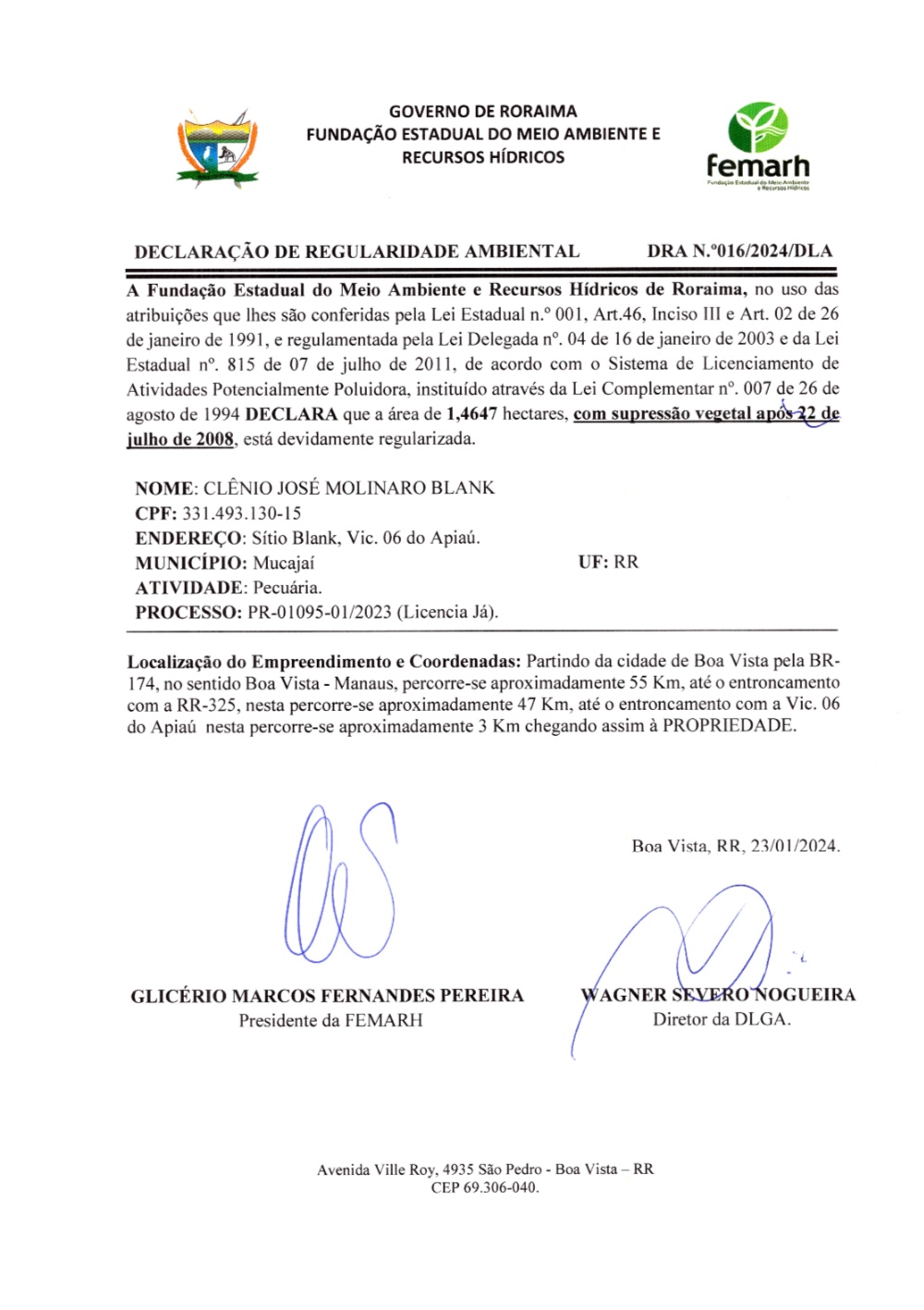 DECLARAÇÃO DE REGULARIDADE AMBIENTAL