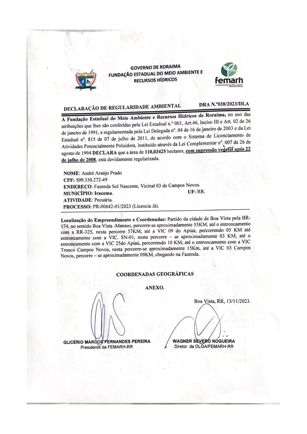 DECLARAÇAO DE REGULARIDADE AMBIENTAL