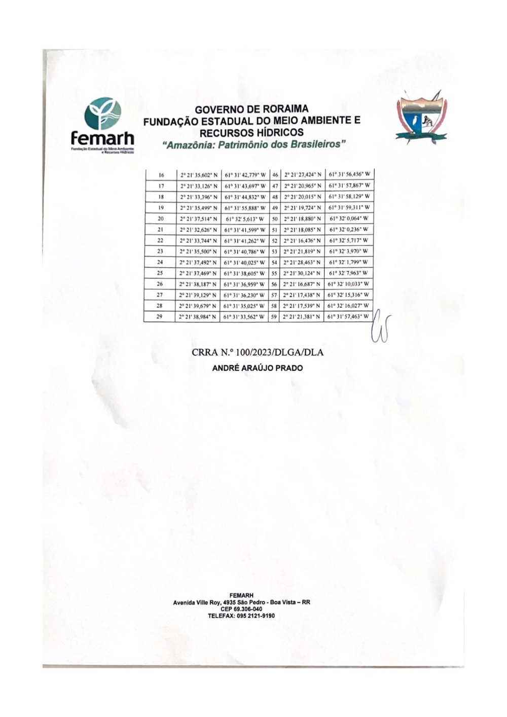 CRRA Nº 100/2023/DLGA/DLA