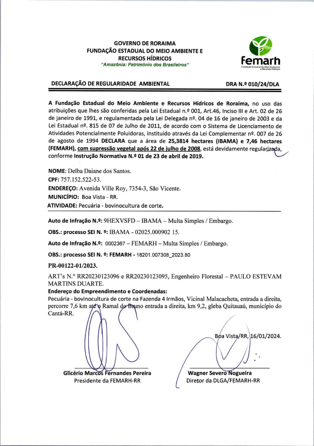 DECLARAÇÃO DE REGULARIDADE AMBIENTAL