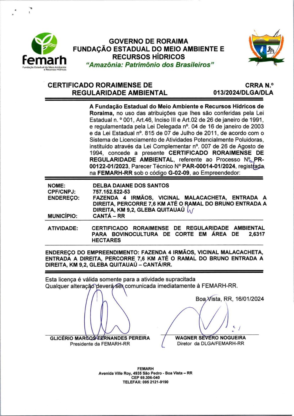 CERTIFICADO RORAIMENSE DE REGULARIDADE AMBIENTAL