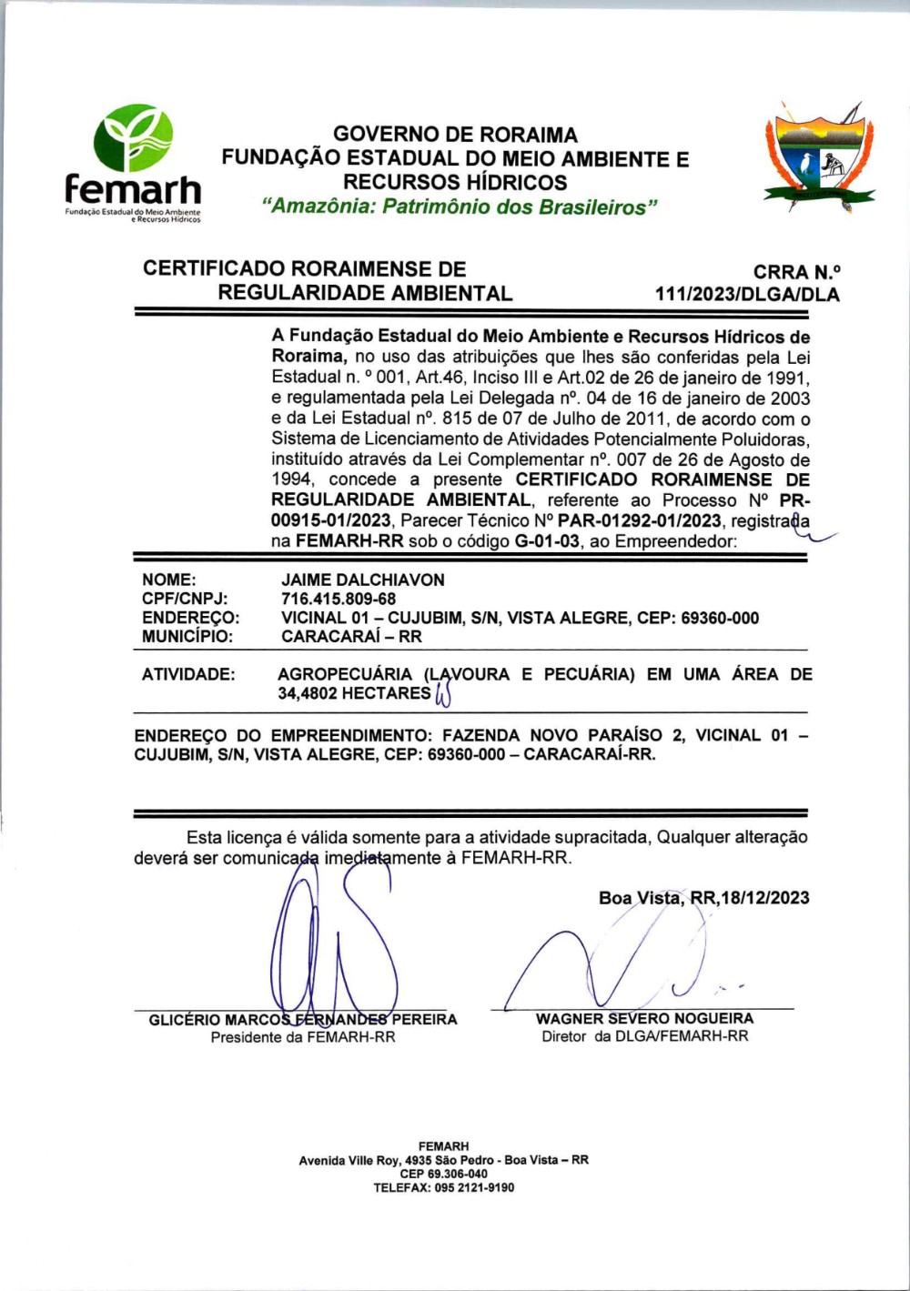 CERTIFICADO RORAIMENSE DE REGULARIDADE AMBIENTAL