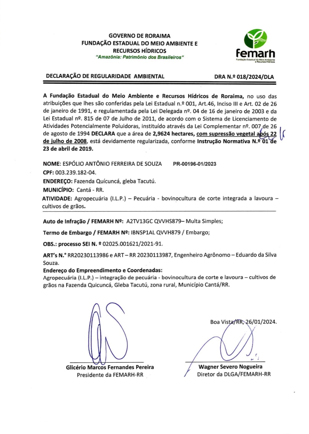 DECLARAÇÃO DE REGULARIDADE AMBIENTAL