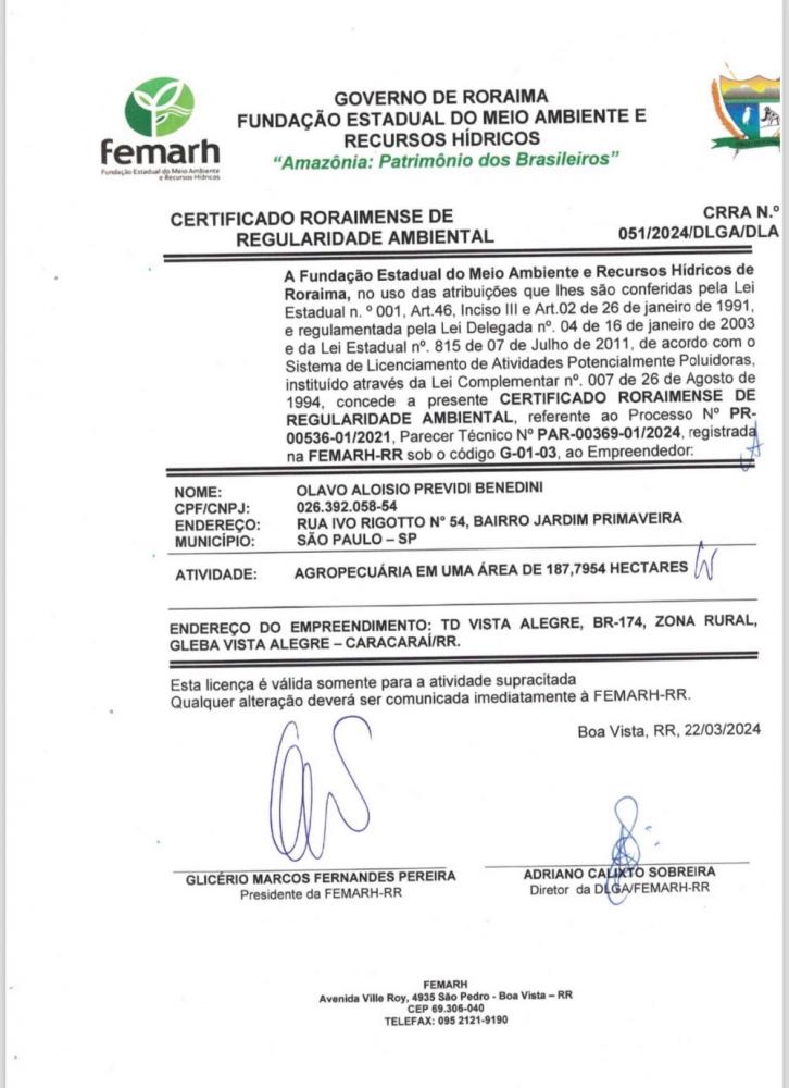 CERTIFICADO RORAIMENSE DE REGULARIDADE AMBIENTAL