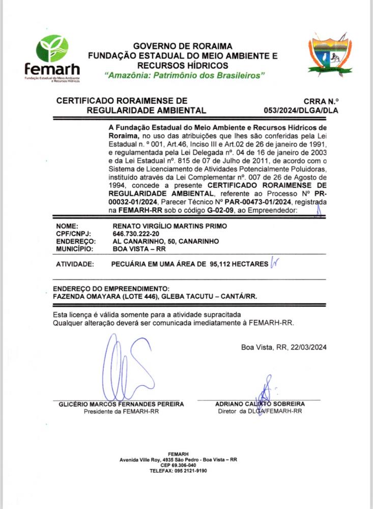 CERTIFICADO RORAIMENSE DE REGULARIDADE AMBIENTAL