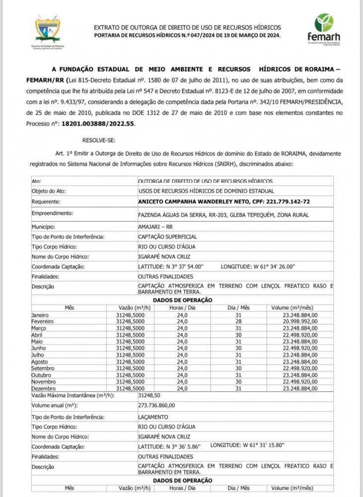PORTARIA DE RECURSOS HÍDRICOS N.º 047/2024 DE 19 DE MARÇO DE 2024
