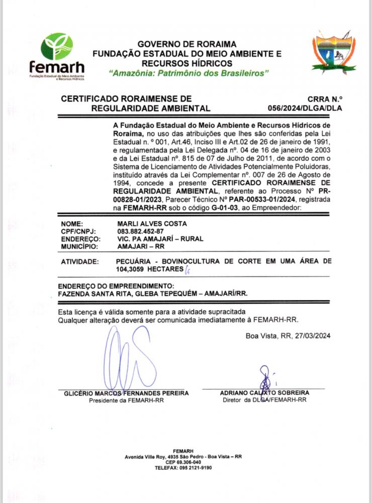 CERTIFICADO RORAIMENSE DE REGULARIDADE AMBIENTAL