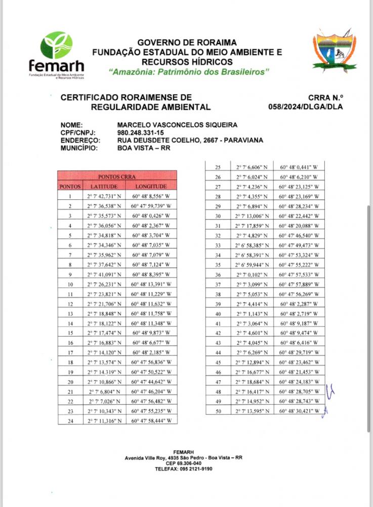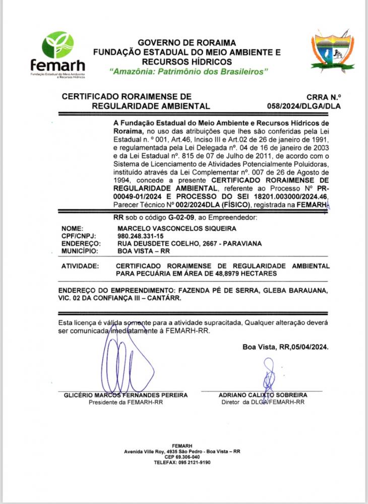 CERTIFICADO RORAIMENSE DE REGULARIDADE AMBIENTAL