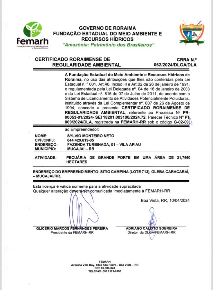 CERTIFICADO RORAIMENSE DE REGULARIDADE AMBIENTAL