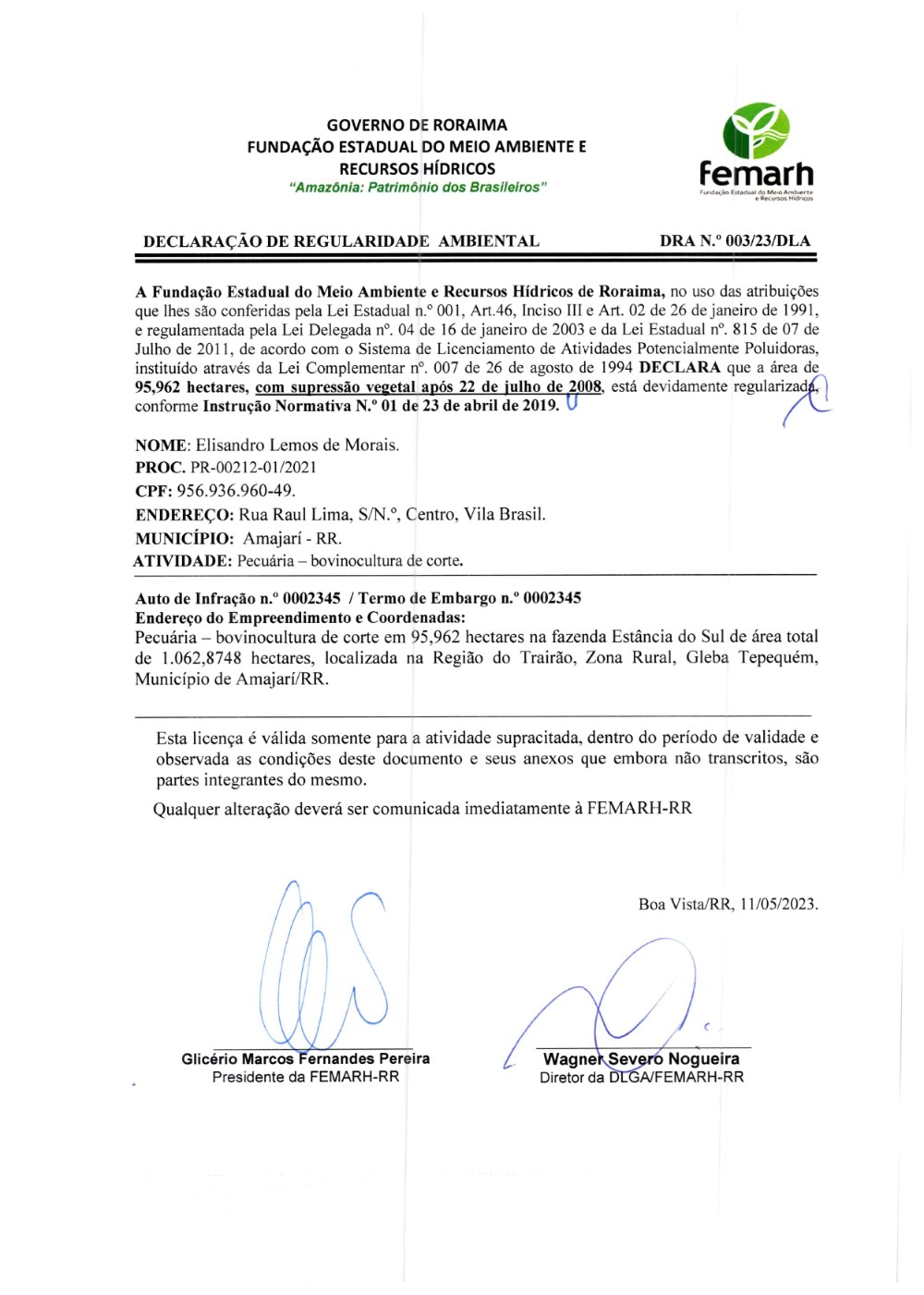 DECLARAÇAO DE REGULARIDADE AMBIENTAL
